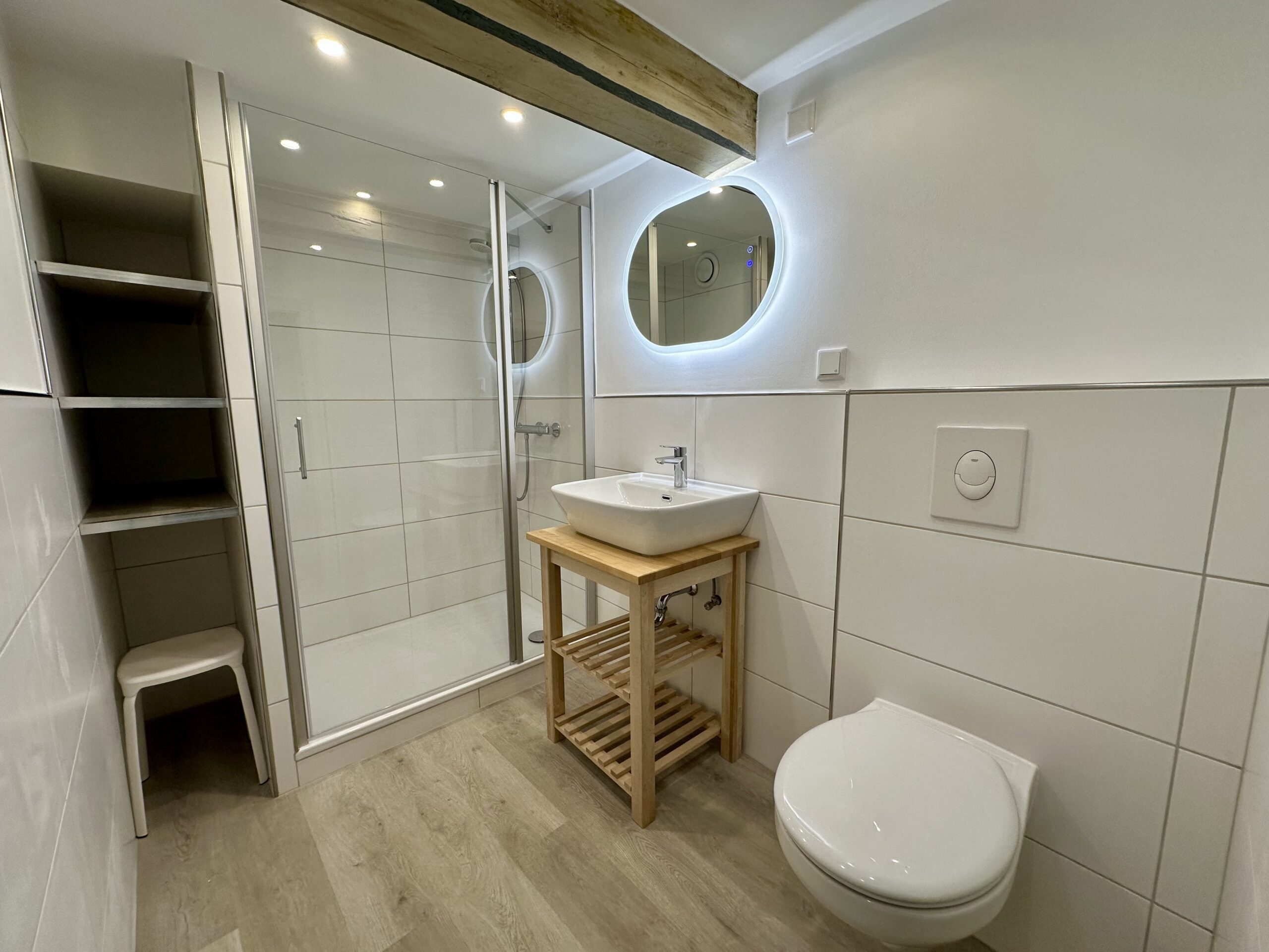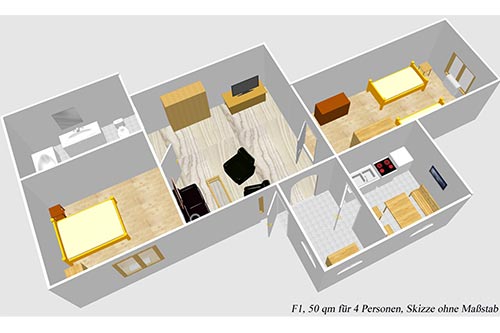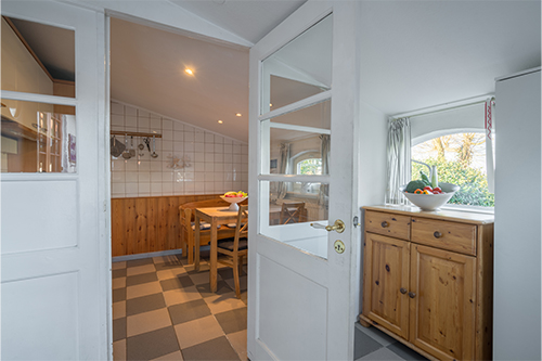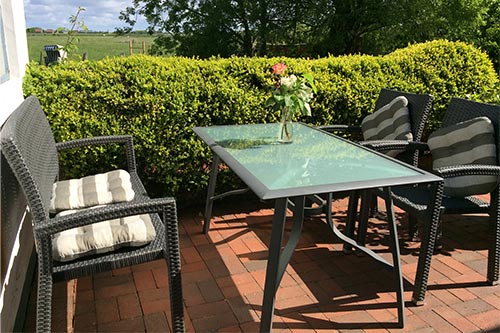 Die Ferienwohnung F1 ist im Erdgeschoss zur Ostseite gelegen. Sie bietet Ihnen eine außerordentliche Sicht über die Wiesen gen Westerhever Leuchtturm.