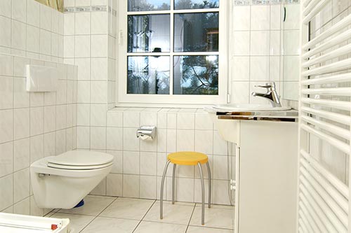 Das Badezimmer befindet sich im Erdgeschoss.